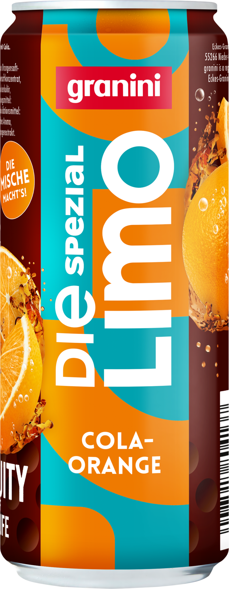 Die Limo von granini Spezial Cola‑Orange kombiniert das Beste aus zwei Welten: den unvergleichbaren Geschmack von Cola mit der erfrischenden Fruchtigkeit spritziger Orangen – einfach Echt. Fruchtig. Ob für zwischendurch oder als erfrischende Auszeit, genieße Die Limo von granini Spezial am besten schön gekühlt. Erlebe jetzt „The Fruity Side of Life“ und greif zu Die Limo Spezial Cola‑Orange!