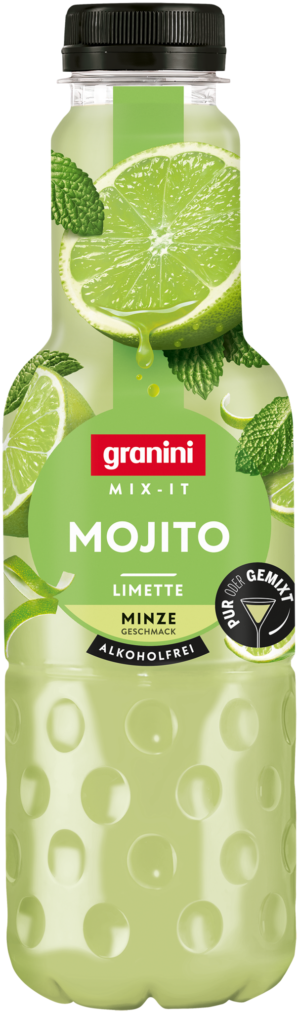 Pur oder gemixt – bereit für deinen neuen Lieblingsdrink? granini Mix-It macht's möglich. Ob pur, als entspannter Feierabend Mocktail auf Eis, oder als fruchtig-trendiger Cocktail: granini Mix-It Mojito bringt dir die besonderen Genussmomente – ganz nach deinem Geschmack. So einfach war Mixing noch nie! Mit nur einer einzigen zusätzlichen Zutat entsteht im Handumdrehen der perfekte Drink. Einfach etwas weißen Rum hinzugeben, leicht umrühren und fertig ist dein fruchtig, erfrischender Mojito! Keine Lust auf Alkohol? Genieße deinen granini Mix-It pur als Saft oder als Mocktail auf Eis – aromatisch, voll im Geschmack und dein perfekter Genussmoment, wie du ihn gerade brauchst. granini Mix-It Mojito vereint fruchtige Limette mit einem feinen Hauch Minze – intensiv & fruchtig im Geschmack und ideal für besondere Saft-, Cocktail- und Mocktail-Momente.