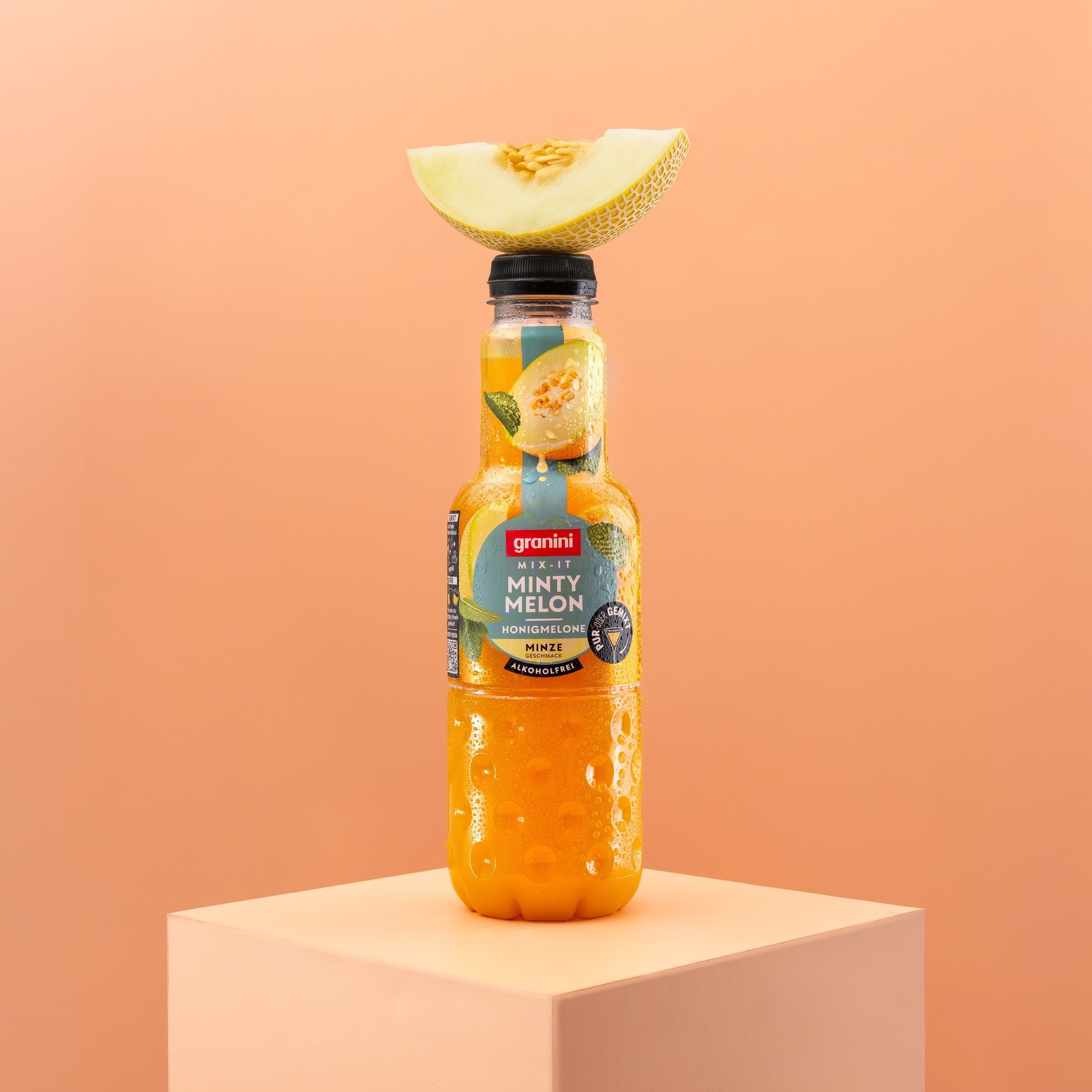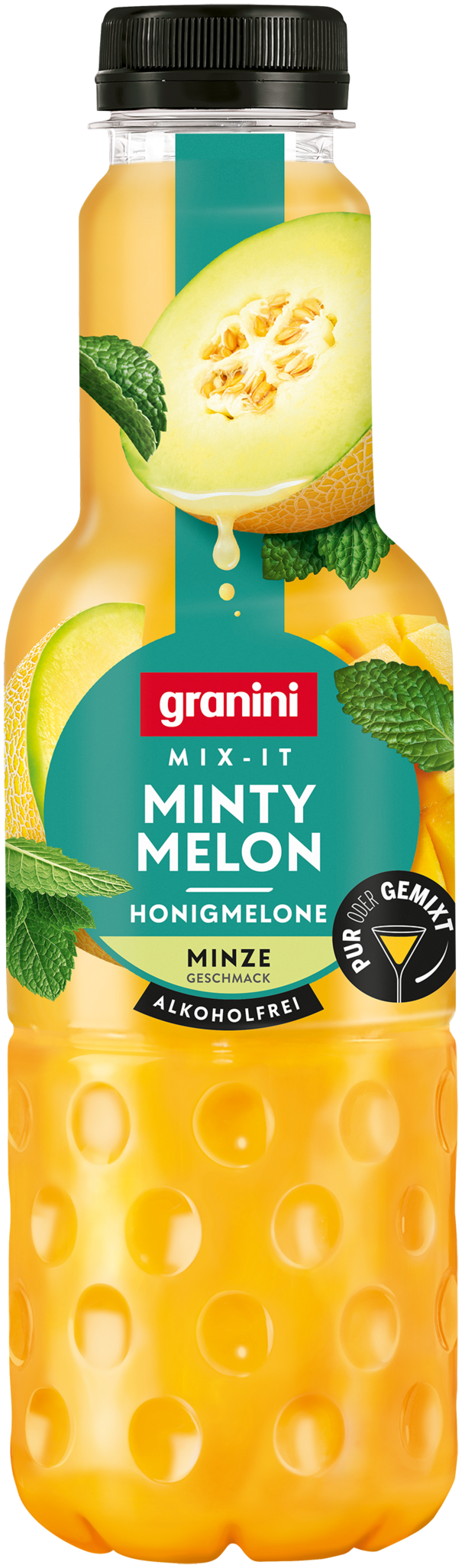 Pur oder gemixt – bereit für deinen neuen Lieblingsdrink? granini Mix-It macht's möglich. Ob pur, als entspannter Feierabend Mocktail auf Eis, oder als fruchtig-trendiger Cocktail: granini Mix-It Minty Melon bringt dir die besonderen Genussmomente – ganz nach deinem Geschmack. So einfach war Mixing noch nie! Mit nur einer einzigen zusätzlichen Zutat entsteht im Handumdrehen der perfekte Drink. Einfach etwas Sekt hinzugeben, leicht umrühren und fertig ist dein fruchtig, erfrischender Minty Melon Spritz! Keine Lust auf Alkohol? Genieße deinen granini Mix-It pur als Saft oder als Mocktail auf Eis – aromatisch, voll im Geschmack und dein perfekter Genussmoment, wie du ihn gerade brauchst. granini Mix-It Minty Melon vereint fruchtige Melone mit einem feinen Hauch Minze – intensiv & fruchtig im Geschmack und ideal für besondere Saft-, Cocktail- und Mocktail-Momente.