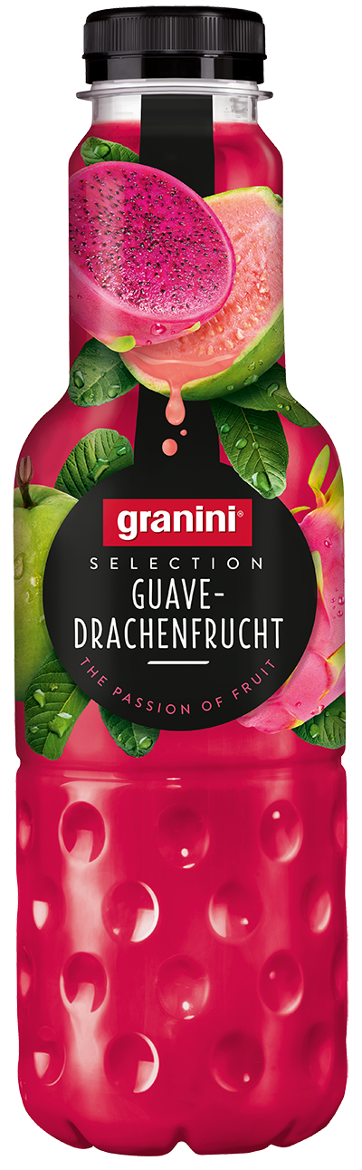 Aus köstlicher Drachenfrucht und Guave machen wir für dich granini Selection Guave-Drachenfrucht. Unsere Säfte geben dir ein erfrischend-fruchtiges Geschmackserlebnis mit dem Besten aus exotischen Früchten – Frische, die man schmeckt. granini steht wie keine andere Fruchtsaftmarke für außergewöhnlichen Trinkgenuss – mit bestem und intensivem Geschmack. Unser granini Selection Guave-Drachenfrucht hat einen Saftgehalt von 40%. Die exotischen Säfte eignen sich auch ideal zum Mixen. Ob Schorle oder Longdrink. Dein Abend wird besonders! Für Veganer sind unsere Säfte die idealen Getränke - wir verwenden in unseren Produkten keine Gelatine oder sonstige Inhaltsstoffe tierischen Ursprungs. granini Selection gibt es in vielen aufregenden Sorten mit dem Besten aus echten Früchten. Für jeden Geschmack ist etwas dabei. Bester Fruchtgeschmack für echtes Trinkvergnügen. Probiere deswegen doch auch mal eine andere Sorte und bringe mehr Vielfalt in dein Leben. Genieße noch heute deinen leckeren und fruchtigen Mix von granini Selection!